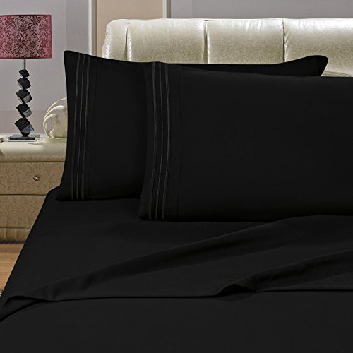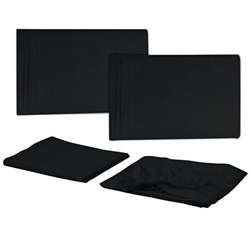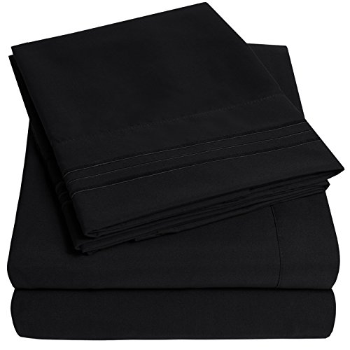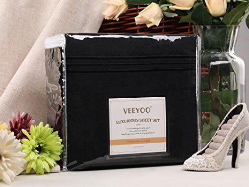VEEYOO 1800 Thread Count Bedding Wrinkle Free Hypoallergenic Bed Sheet Set Hotel Luxury Quality Extra Soft Bedding Set Deep Pockets Pillow Case and Sheet Set - 3 Piece, Twin, Black