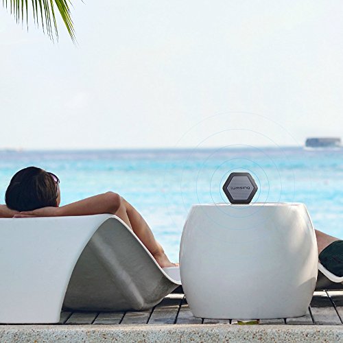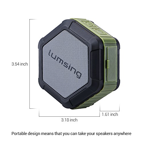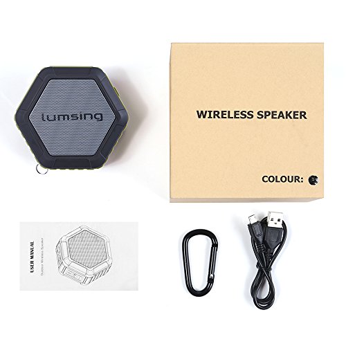 Studio : Lumsing Publisher : Lumsing Binding : Electronics Product Description Audio Format: MP3, WMA, AAC, M4A, OGG, APR, FLAC etc. Bluetooth version: V4.0 DER A2DP Stereo Audio Working distance: 50 feet (without barrier) Speaker: 40mm dedicated HiFi speaker unit Output Power: 4A 3W x 1 SNR ratio: ?80dB Power Input: DC 5V/1A Battery Capacity: 1500mAh rechargeable Lithium Battery Play time: 12 hours with full battery Size: 3.2 x 3.2 x 1.6 inches Weight: 4.5oz Material: ABS engineering plastic TPU plastic Warranty: 12-month manufacturer's warranty.