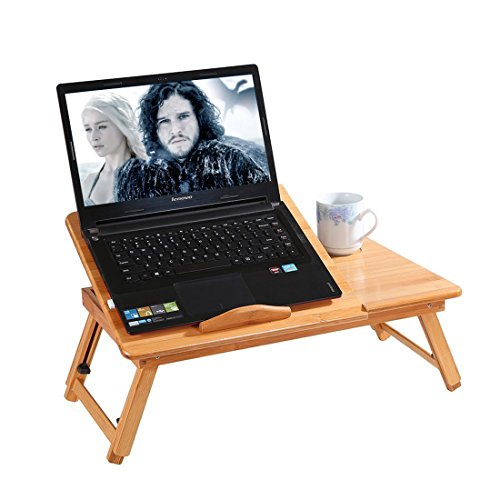-. Title : CharaVector Bamboo Lap Desk Adjustable Breakfast Serving Bed Tray Tilting Top Drawer