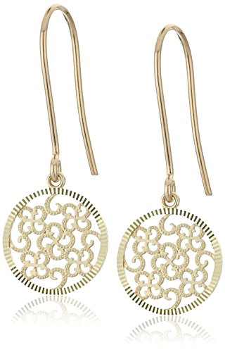 14k Yellow Gold Swiss Cut Circle Novelty Dangle Earrings