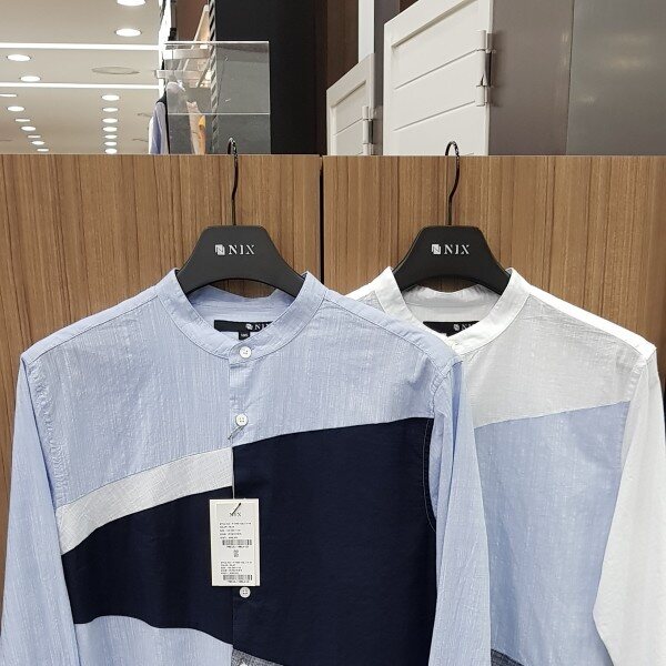 18년 봄신상ㆍ모던하며 기본핏의 스탠에리형 컬러블럭셔츠로 면바지나 청바지모두 잘 어울리는 엣지있는 아이템입니다 ㆍ소재가 초여름까지 코디가능만 면소재로 가디건 ,자켓안에 이너로 세련된 코디가 가능합니다 ㆍ
