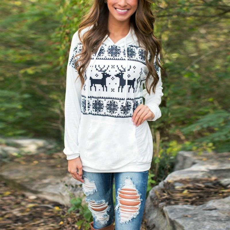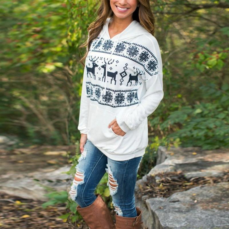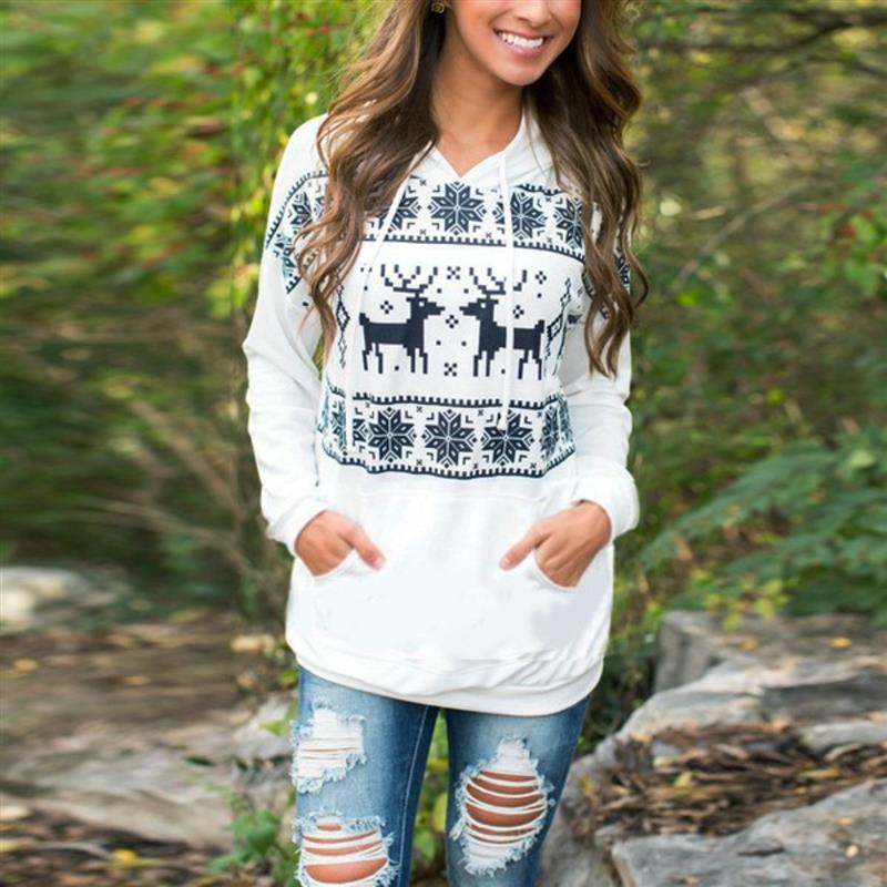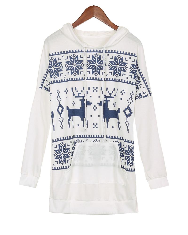 Christmas,Festive,Deer Pattern,Long Sleeve,Hooded,With Two Front Pockets