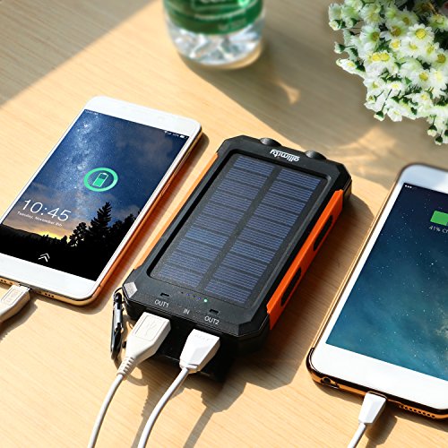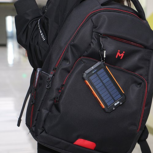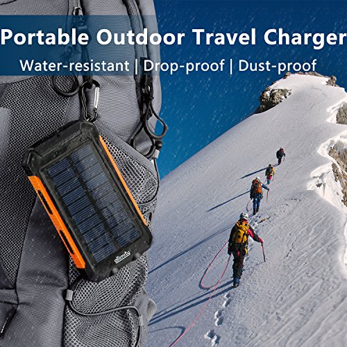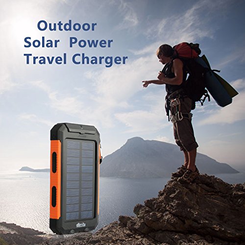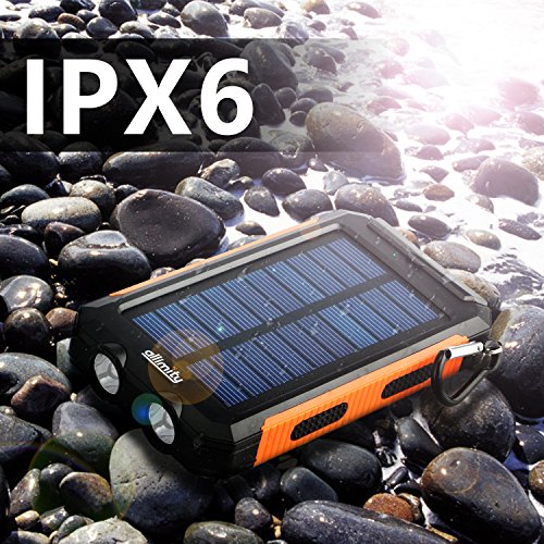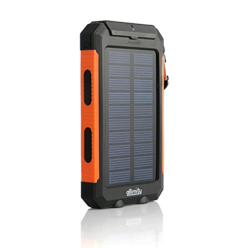 allimity Solar Charger 10000mAh Portable Power Bank External Backup Battery Power Pack with Dual USB Outputs and Flashlight for Smartphones, Tablet and More(Orange)[Upgraded Version]