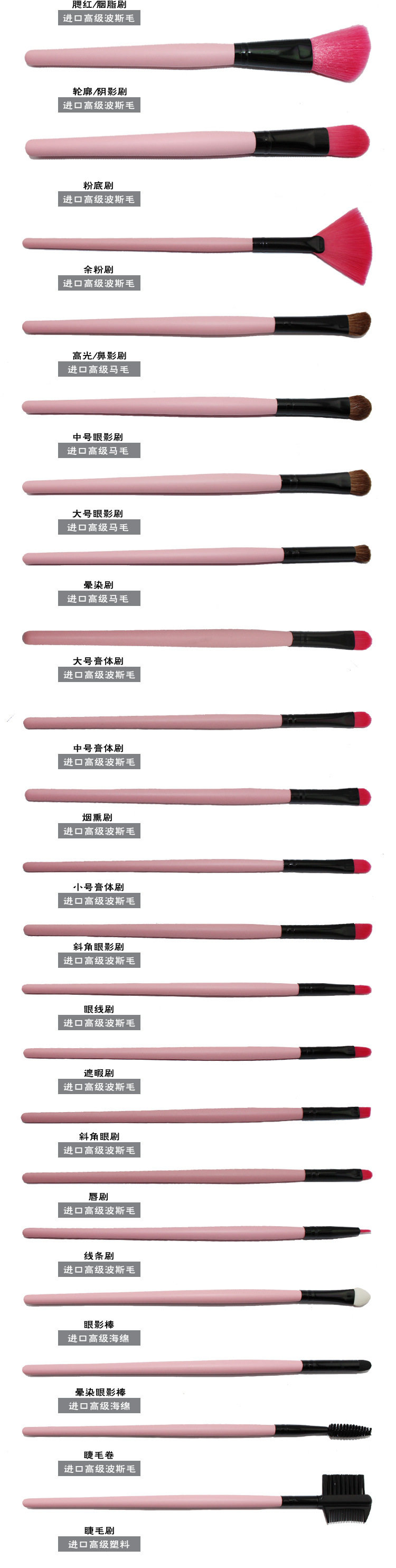 【介绍】:此款刷全部为纤维毛,毛质柔软~刷杆和刷包都没有印任何LOGO