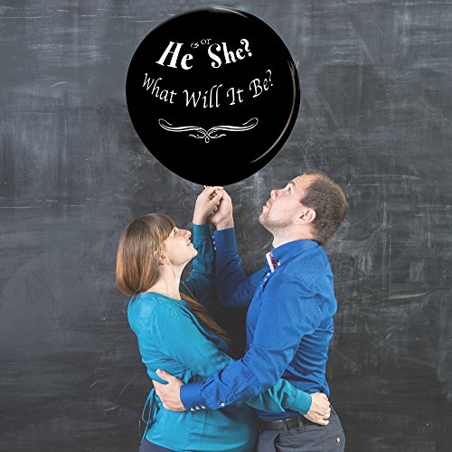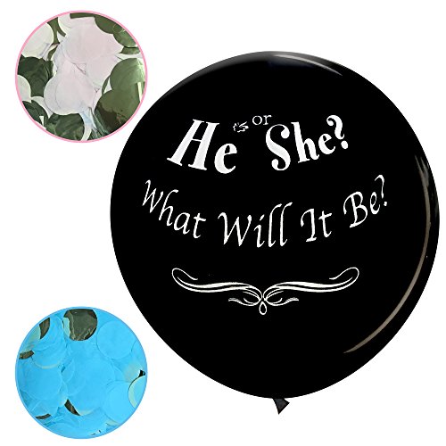 JennyGems Jumbo 36 Gender Reveal Pop Confetti Balloon With Blue and Pink Confetti Packets - Baby Shower Party Balloon - He Or She? What Will It Be?