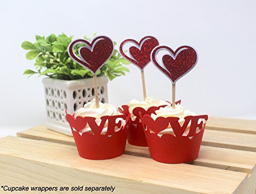 All About Details™ Heart Cupcake Toppers (Red & White)