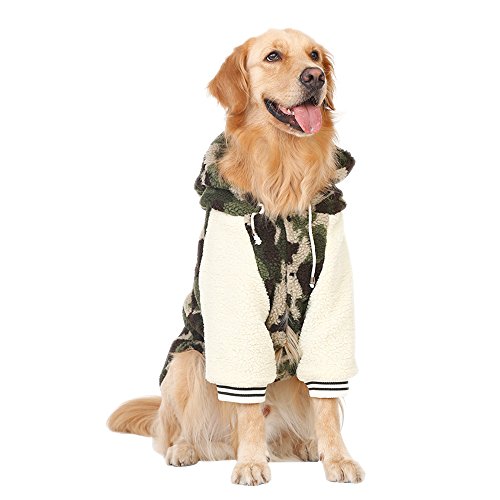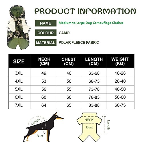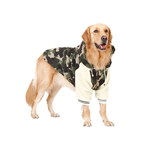 -. Binding : Misc. -. Brand : mylovepets -. Color : Camo -. Feature : Button closure design easy to put on and take off / Classical and fashionable hooded four legged sweatshirt for large dogs / Perfect for everyday wear,holiday,parties,and photos / Soft material to keep your pet comfortable and warm during the cold winter weather / TIPS:If Your pet usually wears size S doesn't mean all size S will fit him/her!!!So please measure your dog and have a reference before your purchase according to the size chart below and picture Product Description -. Label : mylovepets -. Manufacturer : mylovepets -. NumberOfItems : 1 -. PackageQuantity : 1 -. ProductGroup : Pet Products -. ProductTypeName : PET_SUPPLIES -. Publisher : mylovepets -. Studio : mylovepets -. Title : Mylovepets Medium to Large Dog Camouflage Clothes Golden Labrador Samoyed Collie Husky Pet Coat in Spring and Autumn