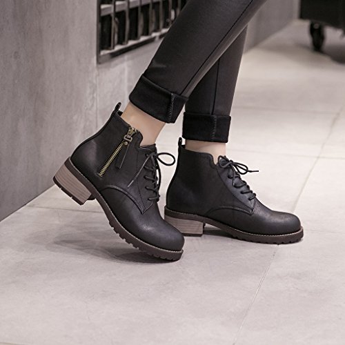 Studio : ALUS Publisher : ALUS Binding : Kitchen Product Description Product Name: Fall and winter models shoes Upper material: PU Shoes Material: comfortable and breathable inside Sole material: non-slip wear-resistant rubber sole Ways to wear: sets of feet / lace With high: 4cm, waterproof Taiwan: 1.5cm, tube height: 10.5cm Size: As shown (standard size, foot fat recommended to buy a large 1-2 yards) Toe shape: round head Popular elements: the heel For the season: autumn and winter Quantity: 1 pair Features: ★ stylish round head design, easy pedicure, but also highlight the quality. ★ elegant and comfortable with a visual impact, highlighting the elegant elegance of women, filling the charm. ★ non-slip wear-resistant rubber outsole. Care instructions: 1. Use neutral soap or detergent water to clean 2. Insert the newspaper in the shoe 3.Shoe should be placed in ventilated place, wrap the facial tissue in the upper to avoid excessive direct sunlight Reminder: Do not soak too long, separate cleaning with other shoes, to avoid string color! 0