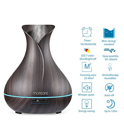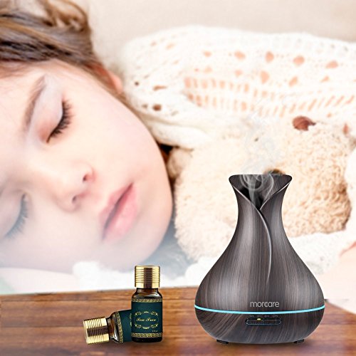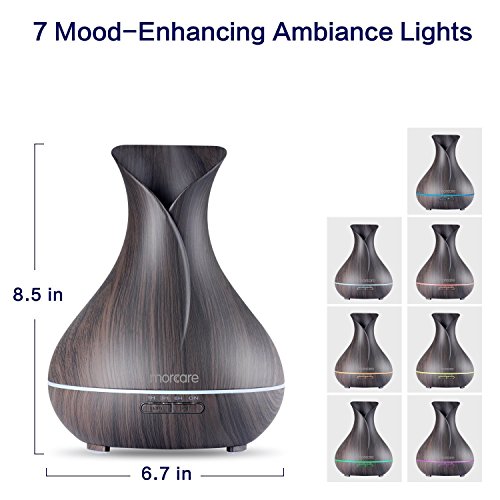 Morcare 400ml BPA Free Ultrasonic Aroma Diffuser Aromatherapy Essential Oil Diffuser Cool Mist Humidifier with 7 Color LED Lights (Dark Wood Grain)