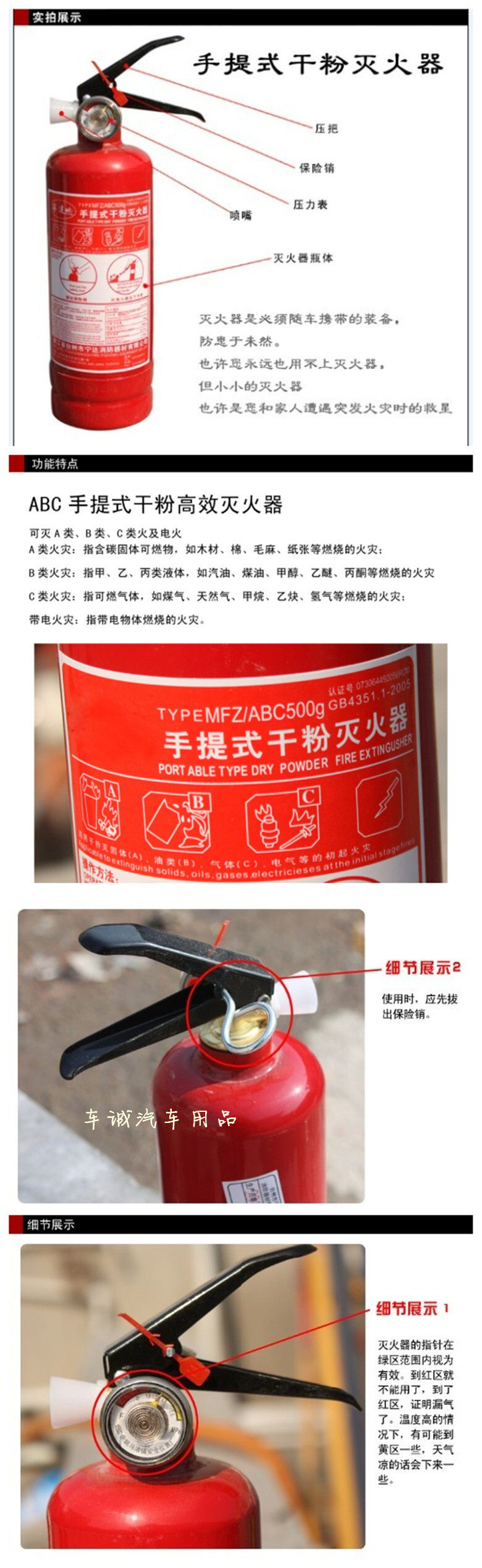 1. portable dry powder fire extinguisher is stored pressure fire extinguisher BC powder efficient, safe, reliable, easy to use and so on. Able to extinguish the fire early flammable liquids and flammable gases and electrical equipment. Applies to vehicles, laboratories, hotels, precision instruments, library and family gas, liquefied petroleum gas fire extinguishing.