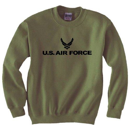 Product Description Military Style Physical Training Military Green crewneck sweatshirt. Features "Air Force" on the front chest. 50/50 Poly/Cotton Sweatshirt. Set-in sleeves, 1x1 athletic rib with Lycra. 0