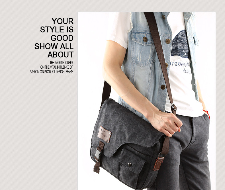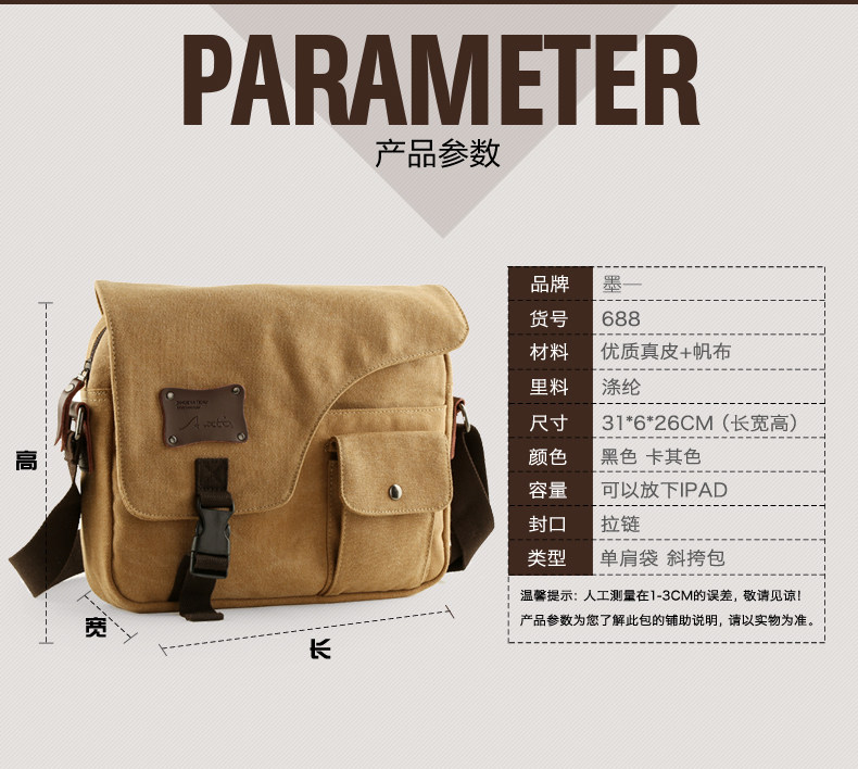 墨一潮流帆布包单肩包休闲男包学生背包男士斜挎包户外斜背包跨包
