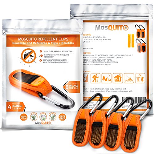 -. Title : MosQuitO Repellent Reusable Clip (4 Pcs) & Refills (8 Pcs) - Premium Quality - 100% Pure Natural Essence Oil - DEET FREE - Great for Adults & Kids
