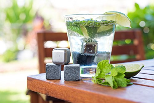 -. Feature : 30 Day Money Back Guarantee. No questions asked. / FOR THOSE WHO CAN'T DECIDE - This awesome 'kit with everything' contains 6 whisky stones in grey basalt and shiny stainless steel, a mini stainless steel tong with silicone tips for great grip and a little drawstring velvet pouch that you can use for storing the cubes. / WONDERFUL GIFT IDEA - Stones sit pretty in our handsome magnetic box, that has been made to look like stone. A novel gift idea that makes for the perfect present. No more need to crack your head for a gift on Birthdays, Anniversaries, Housewarmings or any other special occasion. Ideal for uncle, groomsmen, client, partner, brother, boss, persons who are hard to buy for and those who seem to have everything! / DECENT SIZED STONES THAT ARE EASY TO CLEAN - These 1 inch cubes have smooth, polished surfaces and edges that won't cut your glass. Simply rinse, dry and store till next use. / ICE CUBES WITH A TWIST - These cubes chill without watering down your drink, allowing you to enjoy your favorite beverage in its purest form. Works with both alcoholic and non alcoholic drinks.