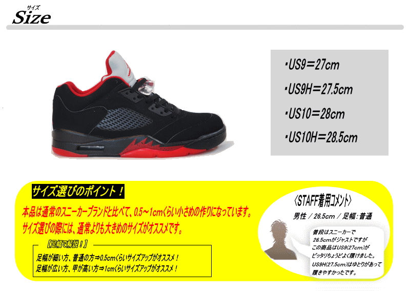 | サイズ | 作り⇒かなり小さめ 【サイズ選びのポイント!】 足幅が細い方、普通の方⇒0.5cmくらいサイズアップがオススメ! 足幅が広い方、甲が高い方⇒1.0cmくらいサイズアップがオススメ! |
