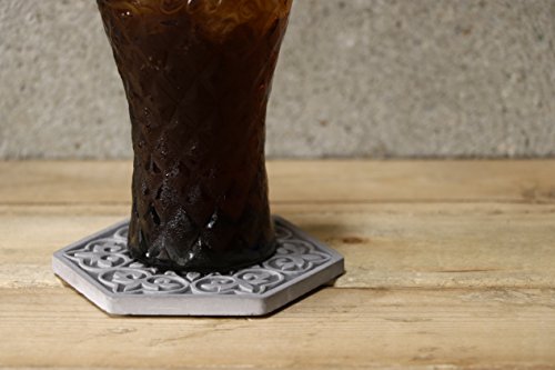 Each plates can be pieced together to form various shapes. These coasters can be used to place drinks. The concrete plates can absorb water and heat so your table will be protected.