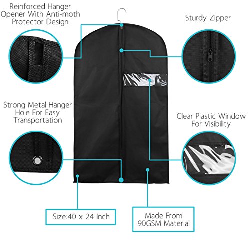 -. Feature : Size: 100cm x 60cm/40" x 24"(L*W); Package Content: 1 x Garment Bag, 3 x Garment Bags, or 5 x Garment Bags / Breathable: Suit Covers made from 90GSM non-woven fabric material that is thick yet breathable--keep clothes fresh. / Clear Plastic Window: Through clear window instantly know if its your skirt, dress or dance costume. / Easy Transport: These suit covers feature a metal eyehole to hook a hanger and allow the bag to be folded in half for easier carrying. / Perfect for suit, coat, fur, leather, top, tuxedo, fur and jacket storage or travel. Fits both Men and Women apparel.