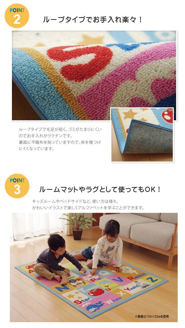 かわいい柄のルームマットです。裏地には不織布を使用していますので、フローリングが傷つきにくいです。お子様の学習机の下や、ベッドサイドなどにおすすめです。 |