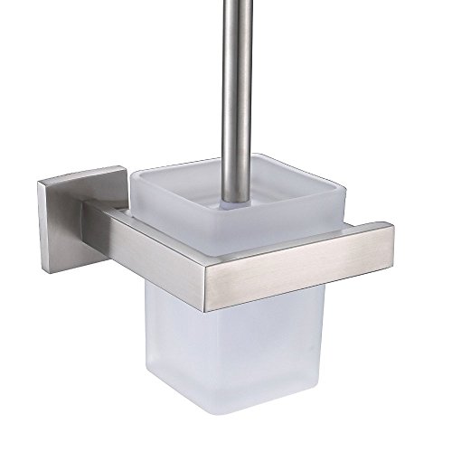 DESIGN: Contemporary design and refined craftmanship. The toilet brush holder keeps your toilet tidy and clean. Wall mount design also saves plenty of space of your bathroom and washroom. The combination of frosted glass toilet brush cup and stainless steel holder and anchor presents a very ornate effect to the bathroom or washroom which is suitable for any style decor with concealed screws design.