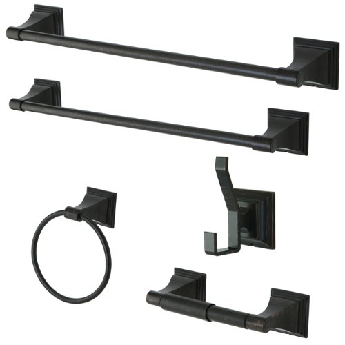Kingston Brass BAHK61212478ORB 18-Inch and 24-Inch Towel Bar, 6-Inch Towel Ring, Toilet Paper Holder and Robe Hook Monarch Bathroom Accessories, 5-Piece in Set, Oil Rubbed Bronze