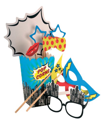 Ginger Ray Pop Art Superhero Party Photo Booth Props, Mixed