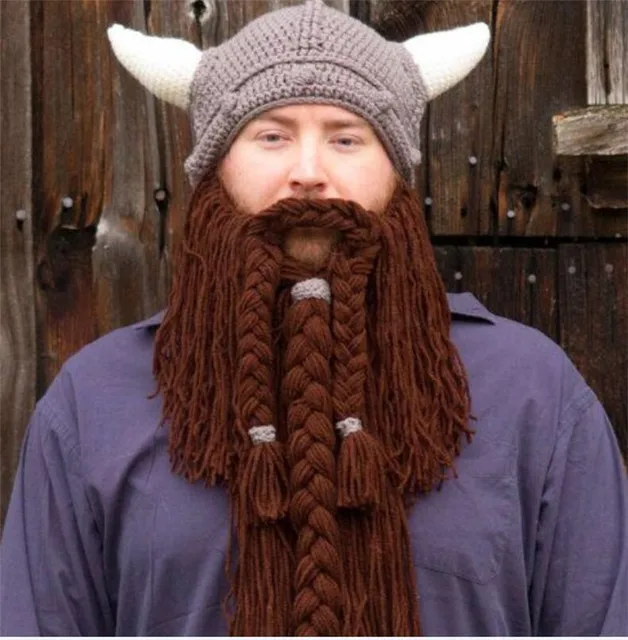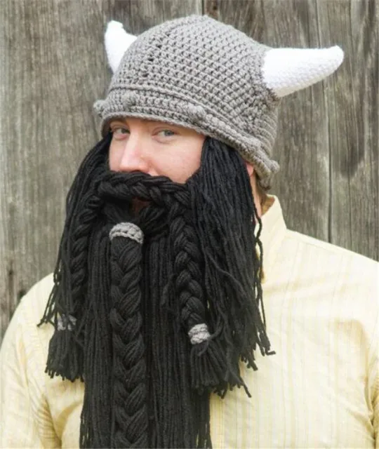| [해외]수제 겨울 울 콧수염 브레이드 모자 해적 얼굴 마스크 가발 수염 비니 슈퍼 큰 바이킹 혼 파티 선물 재미 니트 모자 |