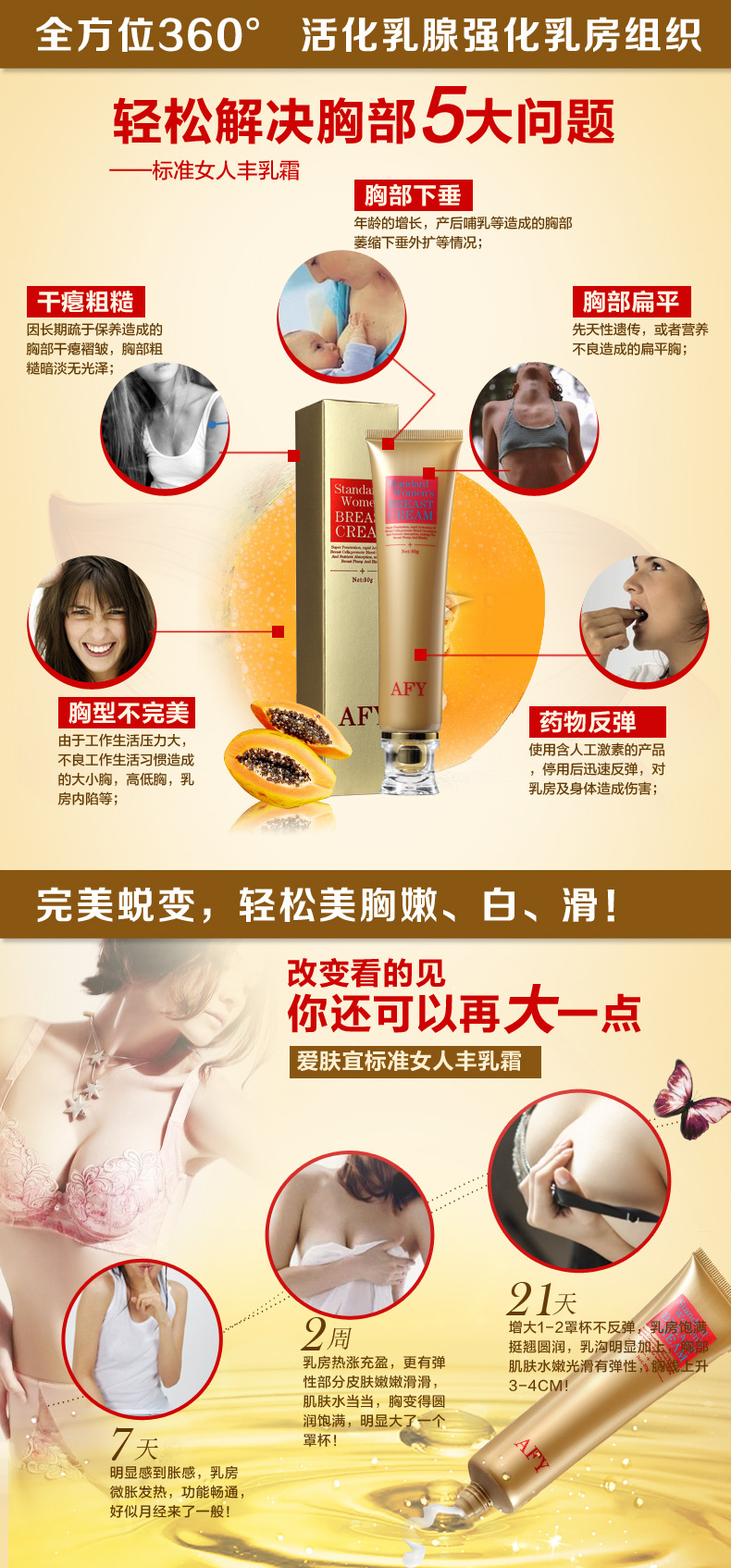 Efficacy: rich in nutrients, increase flexibility to improve breast flat, flabby, sagging status of long-term use of natural breast, fullness, firm.
