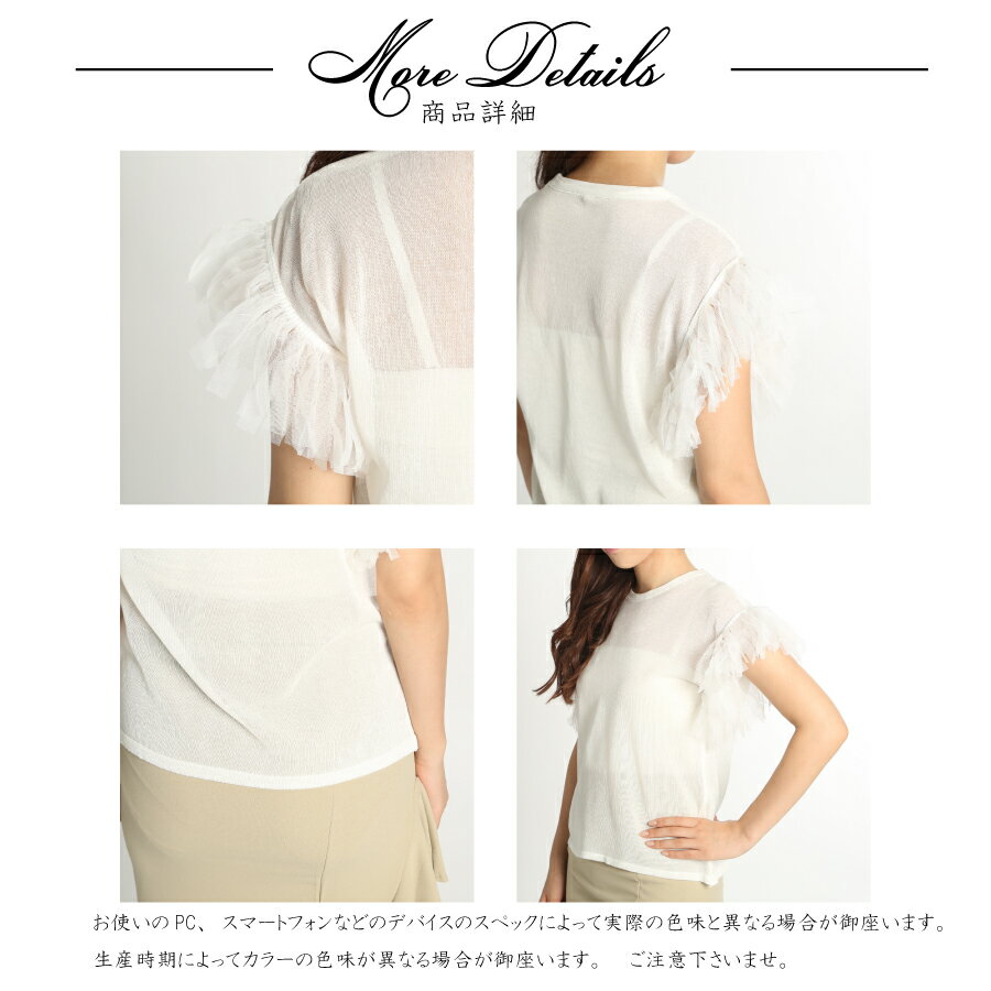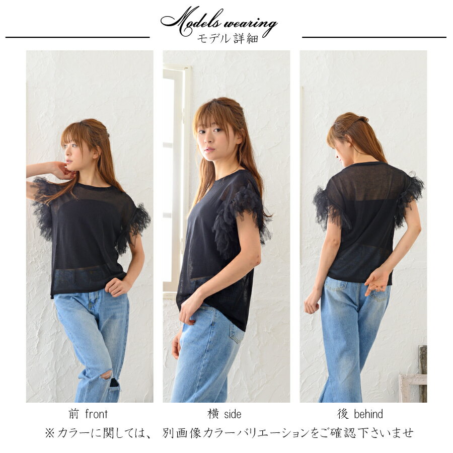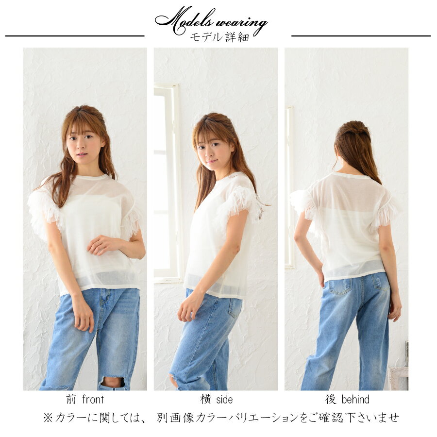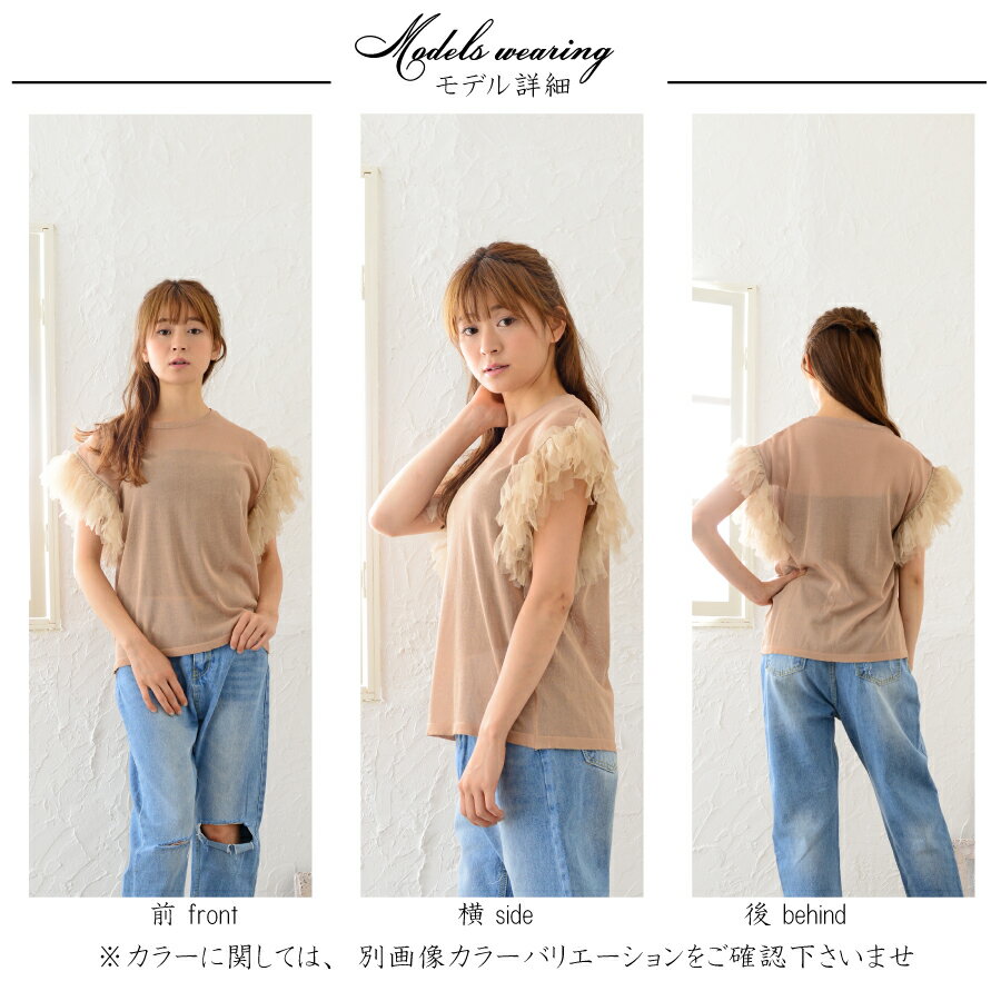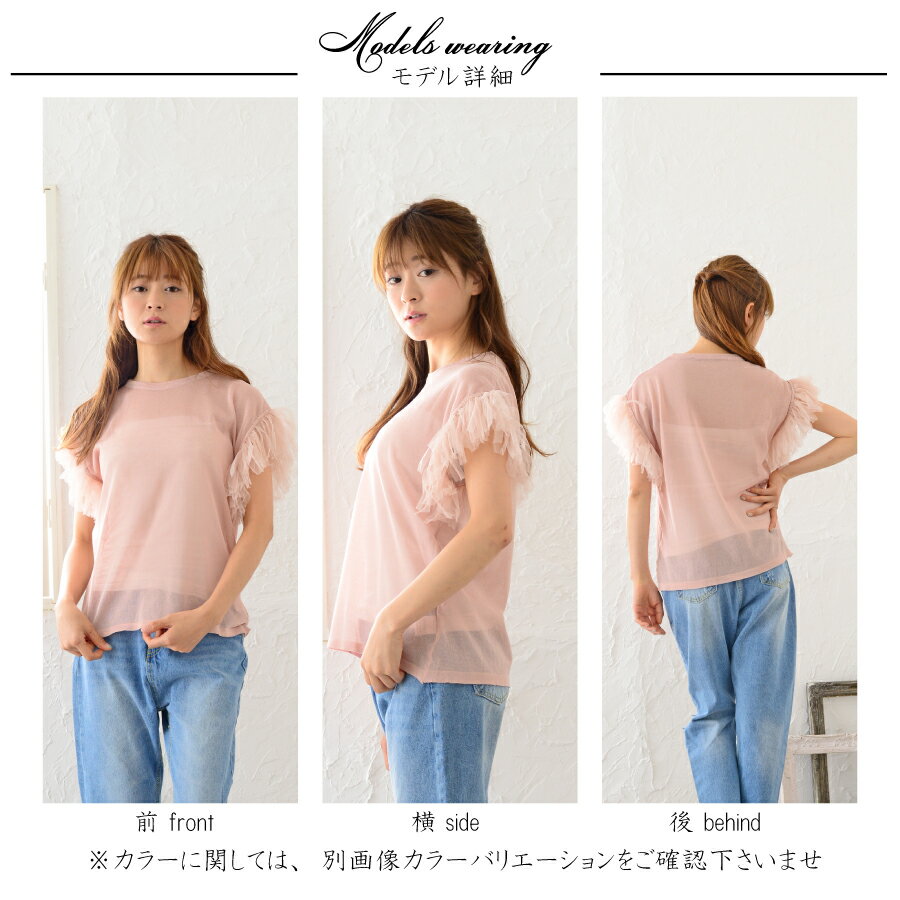 シャリ感のある素材でしわになりにくいです。袖口のチュールがとても女の子らしく、オンでもオフでも着用できます。