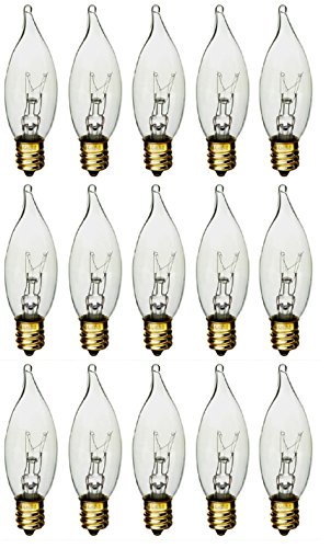 Pack Of 15 40 Watt CFC Clear Flame Shaped Incandescent Candelabra E12 Base Light Bulb