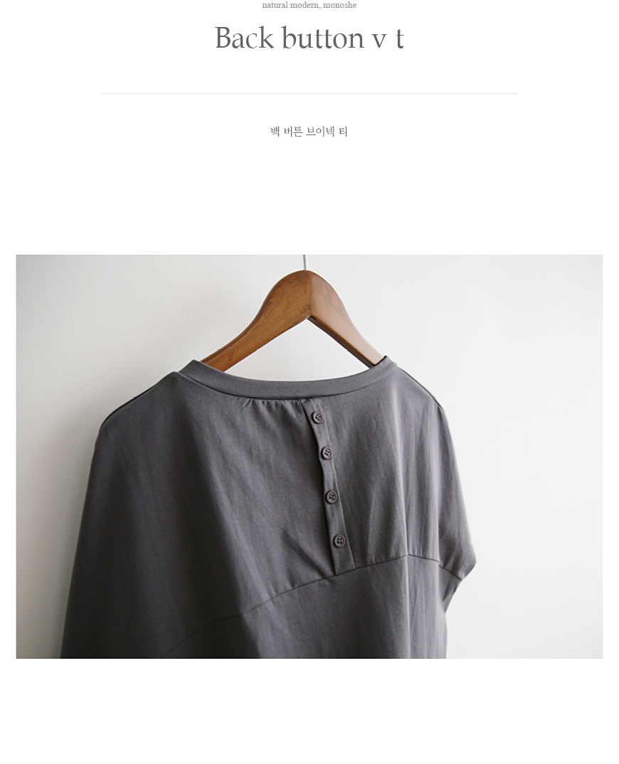 백 버튼 브이넥 티