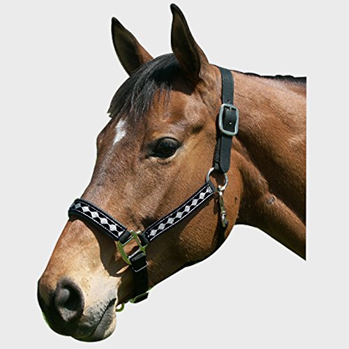 Studio : Intrepid International Publisher : Intrepid International Binding : Sports Product Description Diamond Leather Crown Halter with Comfort padded noseband. These web horse halters have double buckle replaceable leather crowns, adjustable chin strap and swivel throat snap. What a classy Horse Halter choose your favorite color of diamonds. Don't forget the matching lead shank. Halter Colors: Gold/Black, Silver/Black, Purple/Silver, Blue/Pink, Blue/Silver, Neon Green/Black and Neon Pink/Black Size: Full, Cob or Yearling. 0