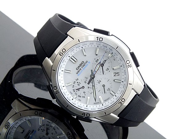 仕様●タフソーラー(大容量ソーラー充電システム)●10気圧防水、クロノグラフ●電波受信機能:自動受信(6回/日)/手動受信、<日本>受信電波:JJY、周波数:40kHz/60kHz(福島/九州両局対応モデル)<北米地域>受信電波:WWVB、周波数:60kHz※ホームタイムゾーン設定で受信可能なゾーンを選択した場合には、ゾーンに合わせた局の受信を行います。尚、時差は選択した都市によって設定されます。●時刻アラーム●バッテリー充電警告機能●パワーセービング機能(暗所では一定期間が経過すると表示を消して節電します)●フルオートカレンダー●フル充電時からソーラー発電無しの状態での駆動時間機能使用の場合:約5ヶ月 パワーセービング状態の場合:約23ヶ月 * 電波受信が行われない場合は、通常のクオーツ精度(平均月差±15秒以内)で動作します。●カラー:ホワイト(文字盤)、ブラック(ベルト)