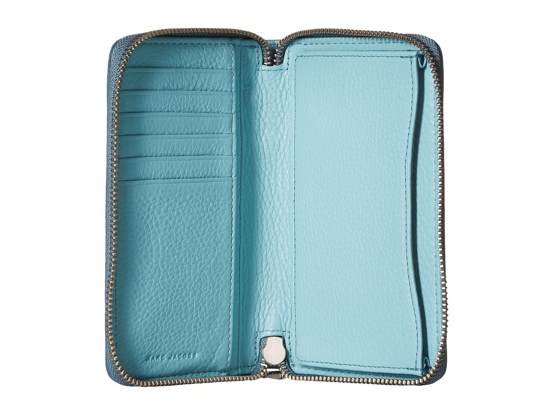 | Product Information SKU: #8719947You have a busy day! Make it easy carrying the Marc Jacobs? Recruit Zip Phone Wristlet and have all your essentials at the ready. Wristlet made of leather. Zip-around closure. Wristlet strap. Front exterior zip pocket. Brand name embossed at front. Leather lined interior features slip pockets, credit card slots and phone slot compatible for iPhone?. Imported. This item may ship with an attached security tag. Merchandise returned without the original security tag attached or a damaged tag may not qualify for a refund.This product may have a manufacturer's warranty. Please visit the manufacturer's website or contact us at warranty@support.zappos.com for full manufacturer warranty details.Measurements: Bottom Width: 6 in Depth: 3?4 in Height: 3 3?4 in Handle Length: 11 in Handle Drop: 5 1?2 in Weight: 6.4 oz |