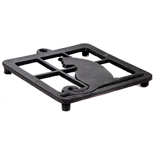 Studio : Home-X Publisher : Home-X Product Description Not only can do these cat trivets protect counter-tops or furniture, but they also make fanciful accents for a table, bookshelf or wall. Durable cast iron trivet with non-scratch rubber feet protects surfaces from direct heat. Great for granite and quartz counters, wood kitchen and dining table. Sturdy heat safe trivets support hot pots, pans, heavy pressure cooker, dishes, bowls and plates. Group a three or four together to use for larger platters, dutch oven, or soup tureens. Makes a "purr"fect gift for a wedding, house warming, bridal shower, birthday, Mother's Day or Christmas. Use these versatile cast iron cat trivets as drink coasters, under plants, or as wall decor. Compliments most home decors including country, vintage, or modern. Hand clean with a damp cloth and towel dry. Available in three styles: Cat Face. Measures about 6.5" x 6" x 0.75". Round trivet with two cat silhouettes. Measures about 6" diameter by 0.75". Includes loop hole at top for wall hanging. Square Trivet with Single Cat in Window. Measures about 6.25" x 6.25" x 0.75. 0