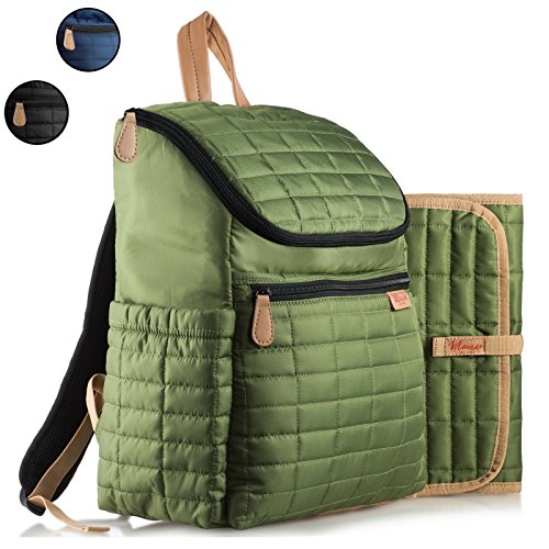 -. Feature : 8 POCKETS: 1 main zippered compartment has 1 full-length pocket (for changing pad) and 1 gathered pocket (for diapers, wipes, etc.). 1 front zippered compartment has 2 additional pocket compartments (for personal items such as cell phones, wallets, keys, etc.). 2 side insulated pockets are ideal for bottles, drinks, etc. Fits all essentials and accessories! / QUALITY MATERIALS: Exclusive wipe-clean material can handle big bottle spills & small sticky hands. The high-quality zippers keep stuff safe & secure. The leather bottom base ensures durability. / CHANGING PAD & ADJUSTABLE STRAPS: Matching changing pad included. Straps adjust to fit men and women of all sizes and are padded for optimal comfort. Features strap buckles which allow it to be snapped onto ANY stroller. / UNISEX DESIGN: Designed for moms and dads! Has the MAMAN signature look with its classic puffer quilts. / THE MAMAN PROMISE: 100% MoneyBack Guarantee. No matter the reason. No questions asked. Experience the MAMAN customer service.