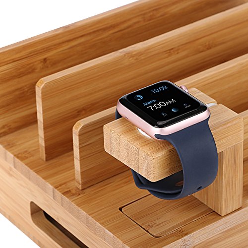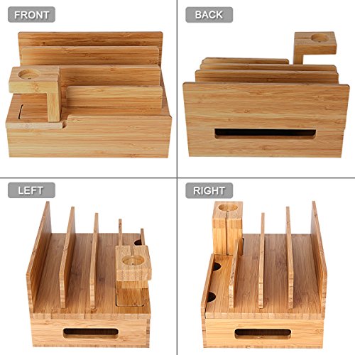 NO MORE TANGLED CABLES: This bamboo charging stand makes misplaced chargers & tangled cables become the history! Keeps up to 6 devices including Apple Watch, iPhone, iPad, iPod, and any universal smart phones, tablets, or other USB charging devices organized neatly on your desktop or counter