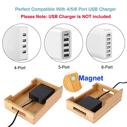 VERSATILE USB CHARGING STATION: Perfectly compatible with most of multi-port USB chargers (NOT included) on the market like Anker, RAVPower, Poweradd, Phosive, etc. Keeps your USB charger out of sight and transforms chaotic and messy charging hubs into elegant charging station