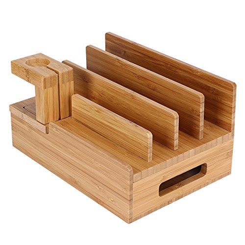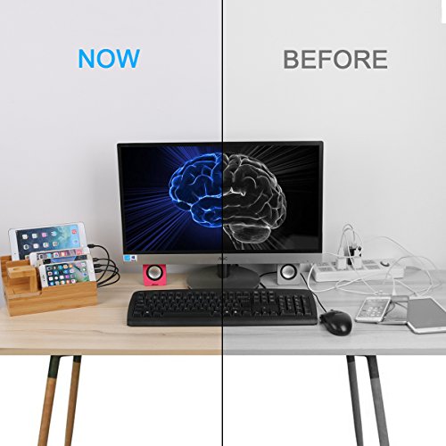 InkoTimes Bamboo Charging Station Dock Organizer for Apple Watch, iPhone, iPad, Universal Cell Phones and Tablets, Compatiable with Anker, RAVPower, PowerAdd, 4/5/6-Port USB Charger