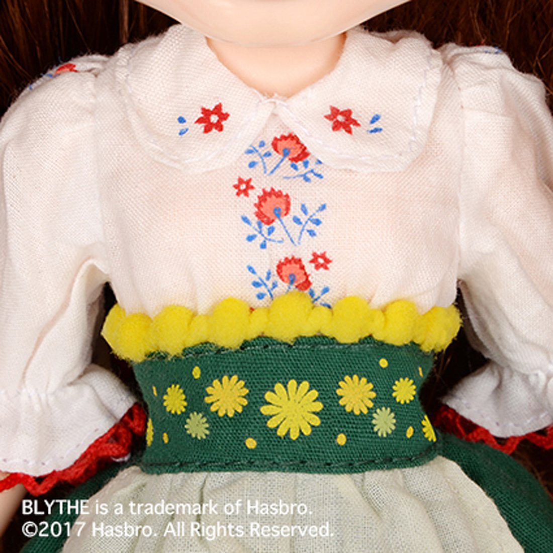 The costume of "Joana Gentiana" who lives in a village surrounded by beautiful nature is a folkroate taste designed a lovely mimosa motif.