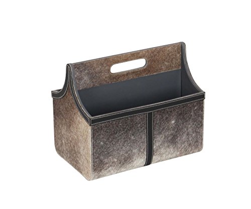Deco 79 95063 Authentic Leather and Wood Magazine Holder, Gray/Brown/Black/White
