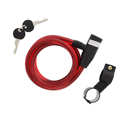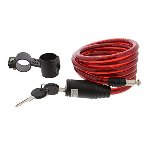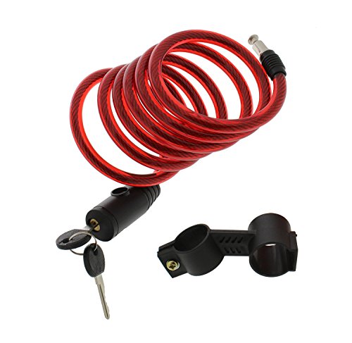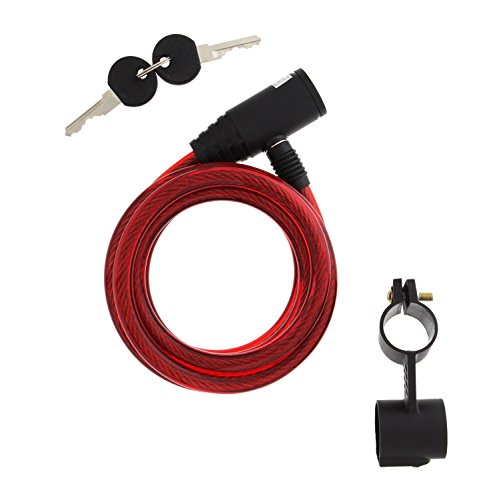 - BUILT TO LAST: Constructed from 1/4-inch (6mm) diameter flexible steel cable that is red in color for strong cut resistance with a 2/5-inch (10 mm) diameter protective vinyl covering to prevent scratches and dents on your bike or other application; Heavy-duty plastic lock and mounting bracket