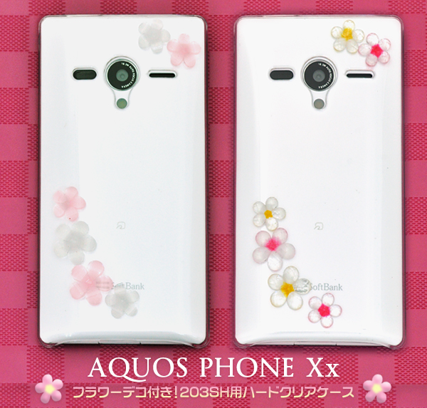 | キュートなフラワーデコ付きのAQUOS PHONE Xx 203SH用ハードクリアケース |