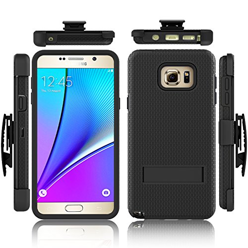 -. Binding : Wireless Phone Accessory -. Brand : EC™ -. Feature : Specailly designed for Galaxy Note 5 / A soft rubberized coating tightly grips to your phone while absorbing shocks and bumps / Swivel belt clip allows 180 degrees rotation, provides differentl angles while watching movies or video calls / Built-in kickstand for landscape hands-free viewing / All our products are in one plastic box which can be protected the case well -. Label : EC™ -. Manufacturer : EC™ -. PackageQuantity : 1 -. ProductGroup : Wireless -. ProductTypeName : WIRELESS_ACCESSORY -. Publisher : EC™ -. Studio : EC™ -. Title : Note 5 Case, EC™ Hard Shock-Resistant Heavy Duty Armor Holster Protective Case Cover with Belt Swivel Clip + Kickstand for Samsung Galaxy Note 5