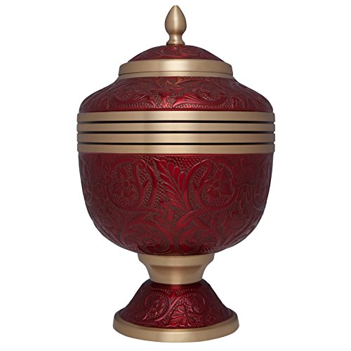 Red Funeral Urn by Liliane Memorials - Cremation Urn for Human Ashes - Hand Made in Brass - Suitable for Cemetery Burial or Niche - Large Size fits remains of Adults up to 200 lbs - Torrance Model
