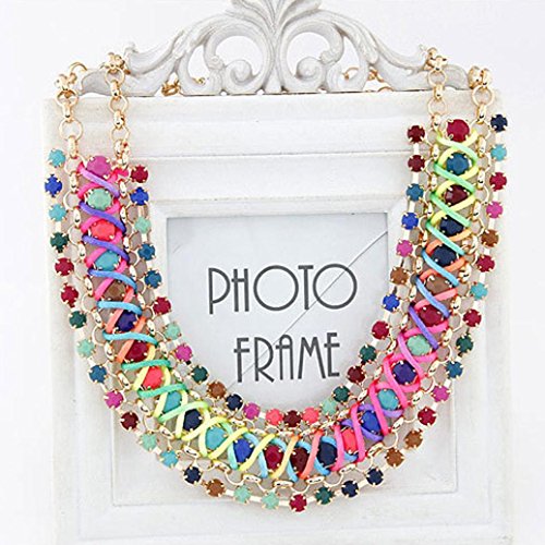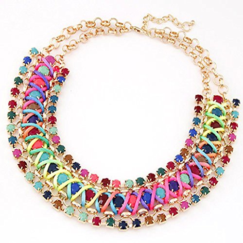 -. Title : Susenstone Multiple Layers Round Ball Chandelier Torsade Colorful Bib Necklace
