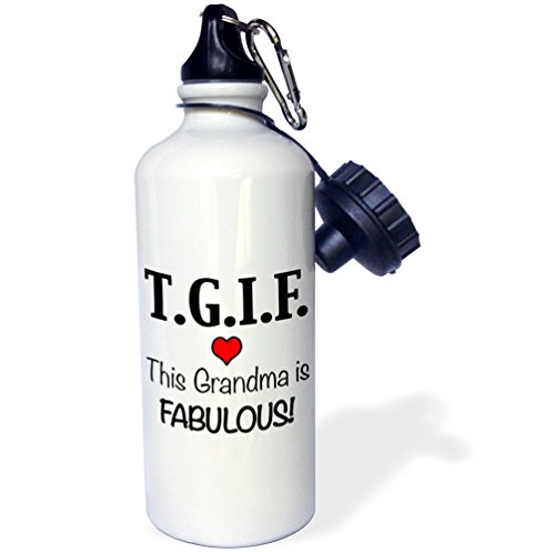 3dRose wb_202946_1 "TGIF This Grandma is Fabulous, Red" Sports Water Bottle, 21 oz, White