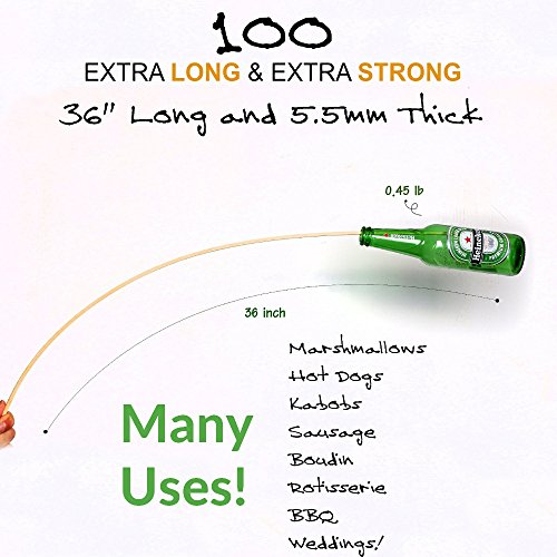 100 Pack - 36" Bamboo Marshmallow Roasting Sticks, Skewers - Hot Dog, Smores, BBQ, Kabobs, Boudin, Sausage. Camp Fire, Camping Stix. STRONGEST ON AMAZON 5.5mm & 3FT LONG - Wooden S'mores Set