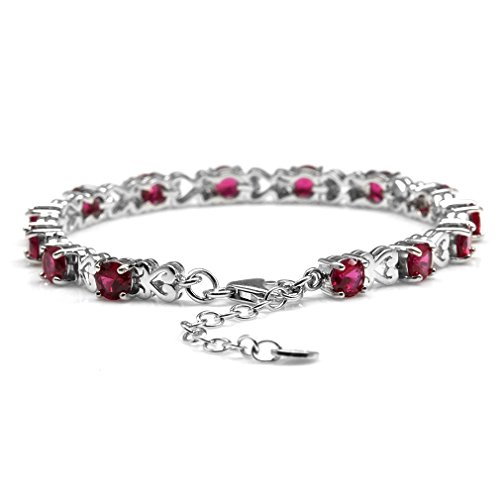 -. Title : Simulated Ruby 925 Sterling Silver Heart Victorian Style 7-8.5" Adjustable Bracelet