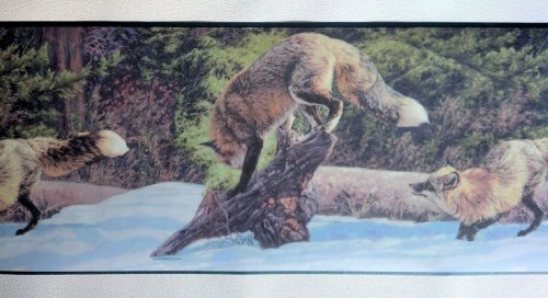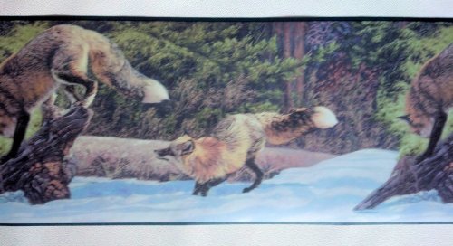 -. Feature : 15 Foot Long Spools - Prepasted Wallpaper Border / 10 Inches Wide - Pattern CW102792 / Red Foxes Wallpaper Border / Lodge Wallpaper Border / Hunting Wallpaper Border