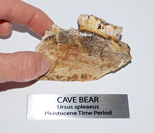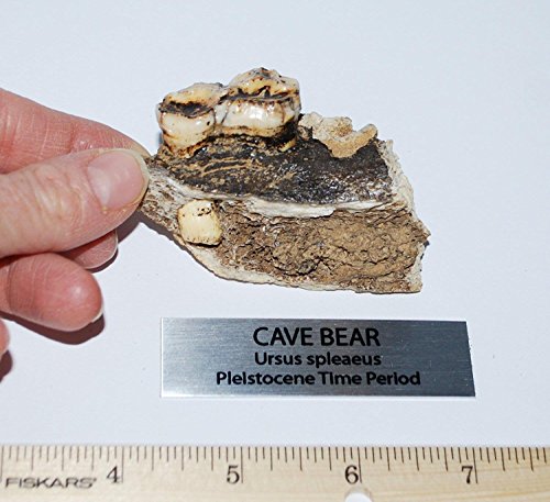 Studio : Fossils, Meteorites, More Publisher : Fossils, Meteorites, More Binding : Toy Product Description This is a jaw section from the prehistoric carnivore CAVE BEAR. Included with the fossil is a nice metal display label. The jaw measures approximately 2 3/4 inches in length. The cave bear (Ursus spelaeus) was a species of bear that lived in Europe during the Pleistocene and became extinct at the beginning of the Last Glacial Maximum about 24,000 years ago. 0